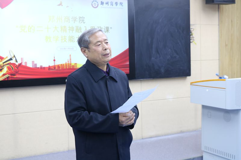 为推动党的二十大精神“进教材、进课堂、进头脑”,有效落实立德树人根本任务,推动思政课改革创新,不断增强思政课的思想性、理论性和亲和力、针对性,提升思政课教师队伍的整体水平,建设一支政治强、情怀深、思维新、视野广、自律严、人格正的高校思想政治理论课教师队伍,11月16日下午14:00,由校党委主办、我院承办的“党的二十大精神融入思政课”教学技能大赛在外语楼104录播室进行。特邀请校党委委员、宣传部程文质部长、教师发展中心石璐主任、校质评中心督导组姚旭东教授、通识教育中心邢克鑫教授、我院王苏民教授作为本次教学技能大赛的评委。我院张党诺院长和全体思政课教师现场观摩。