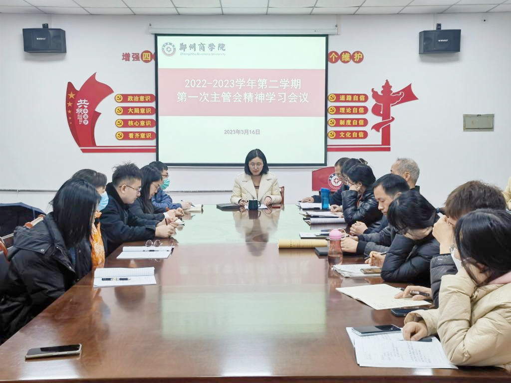 为了深入学习贯彻本学期第一次主管会议精神,更好地推进我院本学期的教学工作,3月16日上午,我院召开学习第一次主管会议校领导工作部署与讲话精神会议。会议由张党诺院长主持,全体无课教师参加了此次会议。