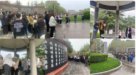 时将清明,课堂接近尾声时,学生们在创办人雕塑前三鞠躬,借此次表达对创办人的思念和感恩之情。通过这次行走的课堂,师生们对于家国情怀的内涵有了更深入地思考,思想和心灵受到了新的洗礼,受益匪浅。