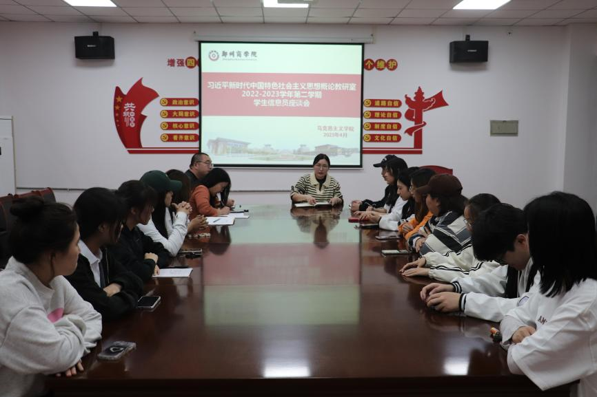 为加强教学信息反馈,进一步完善教学质量监控体系,充分发挥学生参与教学管理和自我管理、自我教育的主体作用,增强学院教学质量和管理服务工作的针对性和实效性,马克思主义学院各教研室于本周分别召开了本学期学生信息员监控工作座谈会。各会议由各教研室骨干教师主持,无课教师和学生信息员与会。