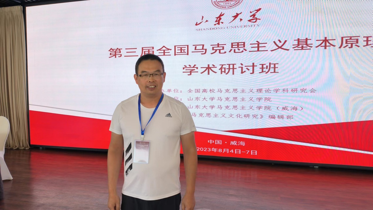 为进一步了解马克思主义基本原理学科的学术前沿、研究动态,加强和提升我院教学科研工作,8月4日至8日,我院教师马信强代表马克思主义基本原理教研室赴山东威海参加了由全国高校马克思主义理论学科研究会主办,山东大学马克思主义学院、山东大学马克思主义学院(威海)、《马克思主义文化研究》编辑部联合承办的“第三届全国马克思主义基本原理”学术研讨班。