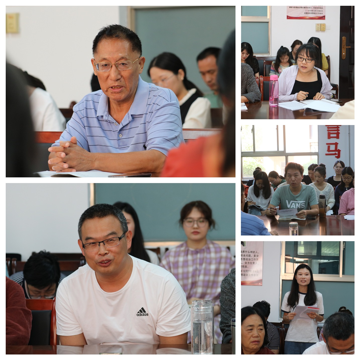 随后,各教研室教师代表逐一分享自己的学习感悟。李义军老师表示作为教师,我们责任重大,要持续学习、终身学习,只有认真领会习近平总书记重要讲话精神,才能更好地传道授业;马信强老师表示作为教师要时刻注意自身的一言一行,严守职业底线,要把教师作为事业一生为之奋斗;杨丽丽老师表示作为一名教师要有教育家的情怀,筑牢意识形态根基,提高自身站位,精心设计教学,讲好每一节课;李巨存老师表示要做到因材施教,实现教学与科研的良性互动;蒋晓慧老师表示要加强道德修养,夯实专业基础,树立职业理想。