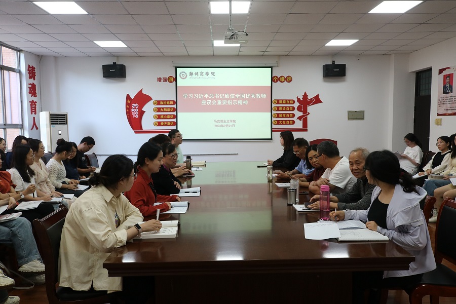 为深入领悟习近平总书记第39个教师节致信全国优秀教师代表座谈会精神,落实立德树人根本任务。我院于2023年9月21日下午组织召开学习了习近平总书记致信全国优秀教师座谈会重要指示精神会议,此次会议由我院刘雨萌老师主持,全体无课教师参加。