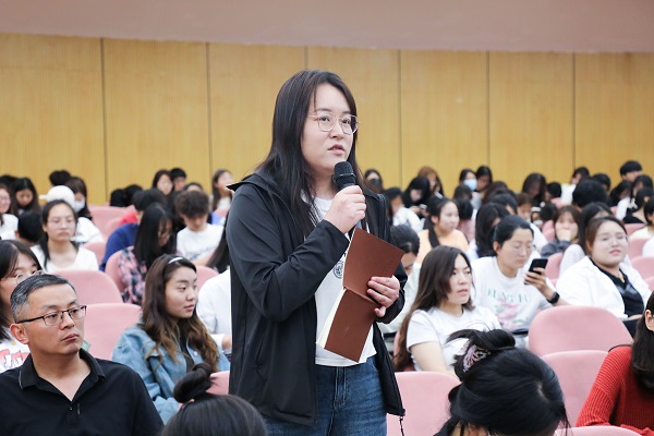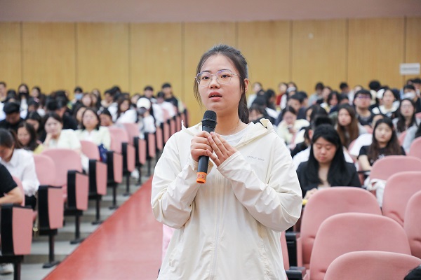 在互动环节,李庆四教授与现场的同学和老师进行热烈交流,就“应对美国的经济制裁和科技封锁,中国应该如何保持战略定力”、“作为大学生,在国际化项目或对外交往中,有哪些问题是需要注意的”等问题,与老师同学们交换意见并提出宝贵的建议,李庆四教授的答复赢得现场师生的掌声和共鸣。