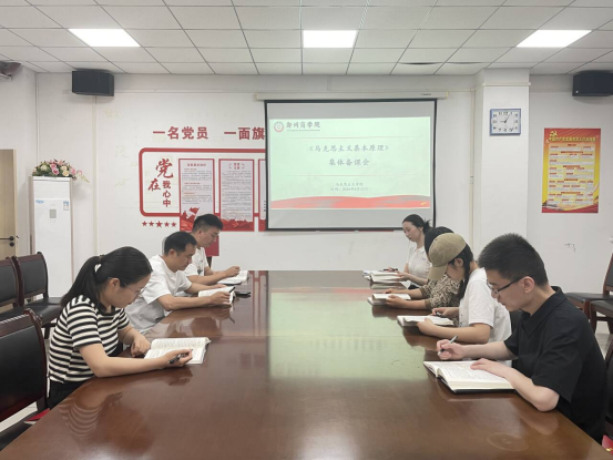 为明确教研室工作计划,原理教研室于2024年5月22日在我院会议室开展集体备课会,会议由原理教研室主任李巨存主持召开,原理教研室全体无课教师参会。