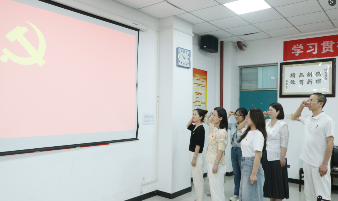 首先,张党诺院长带领全体党员重温入党誓词。各位党员举起右拳,在党旗下庄重宣誓。全体党员满怀激情,声音铿锵,字字豪迈,传达出身为共产党员的荣誉感、责任感和使命感,更加坚定了我院党员教师的入党初心。