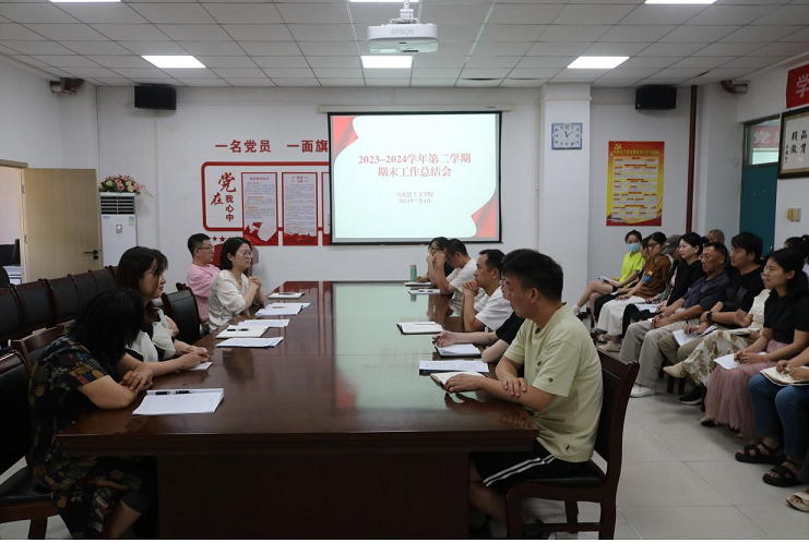 为全面总结本学期党建、教学和科研各项工作,理清新学期工作思路,推动学院持续稳定发展,7月4日上午,我院在会议室召开2023—2024学年第二学期期末工作总结会议。会议由院党委书记张艳丽主持,院长张党诺和全体教师参加。