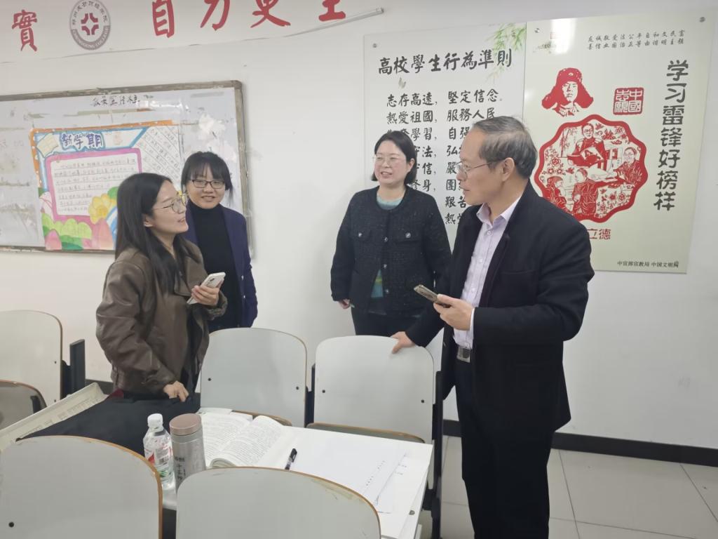 专家组采取随机抽取、推门听课的方式,听取了我校思政课教师王晓楠讲授的《毛泽东思想和中国特色社会主义理论体系概论》课程和王菲讲授的《中国近现代史纲要》课程。听课结束后专家组就两位老师的课堂教学情况进行了现场指导和点评,对授课教师的理论功底、教学设计、教学效果等方面给予充分肯定,指出思政课的“课前十分钟 学生上讲台”设计有特色,有效促进了学生将理论知识与实践应用相融合,任课教师课程讲解有深度,学生的课堂参与度高,思政课教学效果显著。同时,就如何进一步提升课堂教学质量提出了指导性意见,指出教师在授课过程中要注重史论结合,增加课堂互动,将知识讲授与价值观引领相结合。调研组专家还现场向听课学生发放了调查问卷,对思政课教学情况、学生学习情况进行更加全面深入的调研。