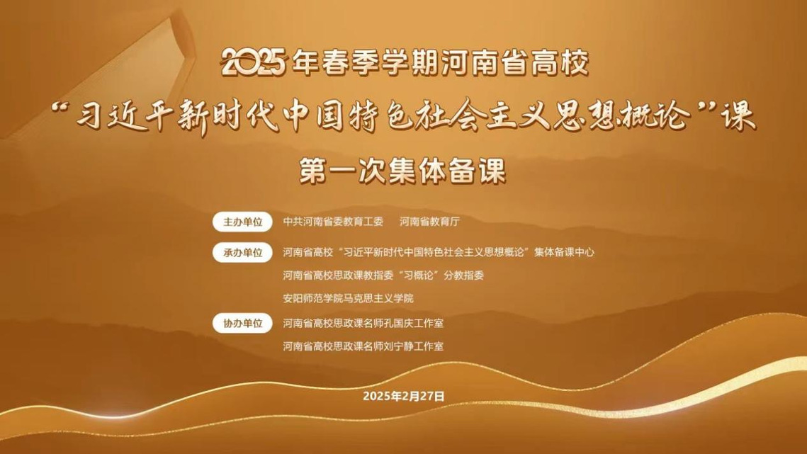 为深入学习贯彻党的二十届三中全会精神,坚持思政课建设与党的创新理论武装同步推进,提升“习近平新时代中国特色社会主义思想概论”课教学的针对性和吸引力,2月27日上午,教研室组织全体授课教师观看省委教育工委、省教育厅举办的2025年春季学期河南省高校“习近平新时代中国特色社会主义思想概论”课第一次集体备课会。
