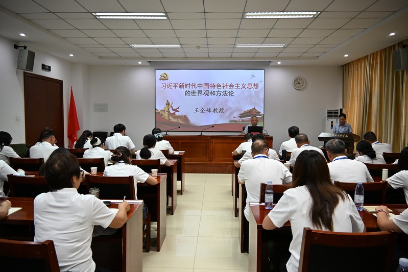 开班当日上午,信阳市委党校教授王全峰作《习近平新时代中国特色社会主义思想的世界观和方法论》专题报告。王教授围绕党的创新理论与新时代、认真学习好党的创新理论的基本道理、全面把握习近平新时代中国特色社会主义思想的学理、深入领会习近平新时代中国特色社会主义思想的哲理四个方面,系统阐释了习近平新时代中国特色社会主义思想的学理、哲理,将抽象理论具象化为可感可知的案例,为我们提供了“把道理讲深讲透”的教学范式。