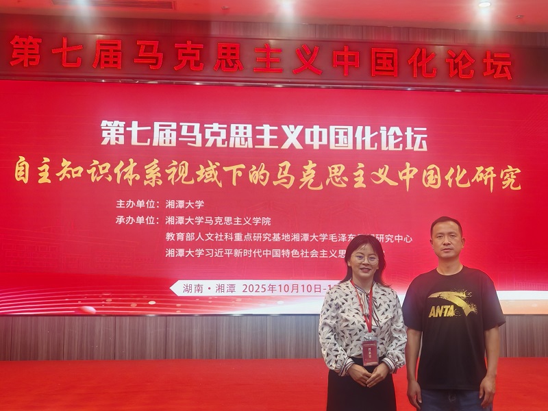 10月10日至12日,第七届马克思主义中国化论坛在湘潭召开,我院教师马江雁、徐本磊受邀参会。本次论坛以“自主知识体系视域下的马克思主义中国化研究”为主题,旨在进一步深化马克思主义中国化及其创新理论成果的研究。