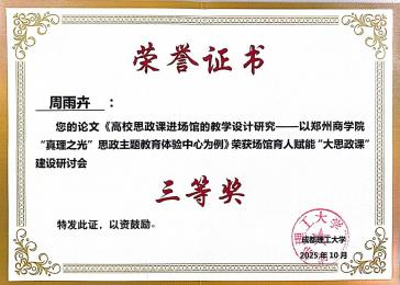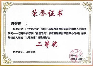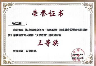 此外,本次研讨会上,我院3位教师荣获场馆育人赋能“大思政课”建设研讨会优秀论文奖。