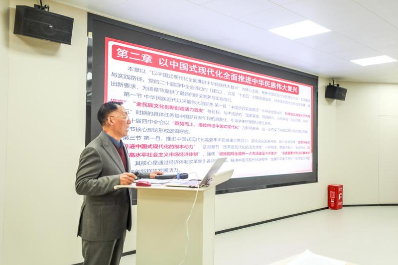 吴泽强在讲话中表示,马克思主义学院作为传播党的创新理论、培育时代新人的主阵地,肩负着“讲好中国故事 传播好中国声音”的重要使命,要将学习贯彻党的二十届四中全会精神作为当前和今后一个时期的重要政治任务,做到认真研学、学深悟透,全面准确领会其丰富内涵与精髓要义,推动思政课建设与党的创新理论武装同频共振。