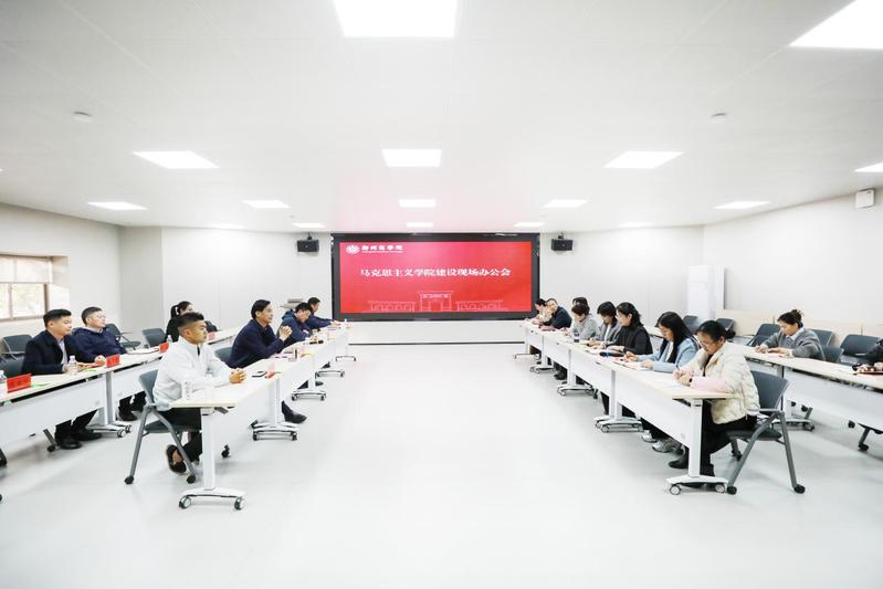 为深入贯彻习近平总书记关于学校思政课建设的重要指示批示精神,推动马克思主义学院高质量发展,近日,校党委书记吴建军、校长吴泽强、董事长助理陈宗纬、副校长刘升阳深入马克思主义学院考察调研并召开现场办公会,聚焦学院发展实际需求,现场办公协调解决关键问题。党委办公室、党委宣传部、党委统战部、教务处、马克思主义学院班子成员和教研室主任等参加会议,会议由马克思主义学院党委书记张艳丽主持。