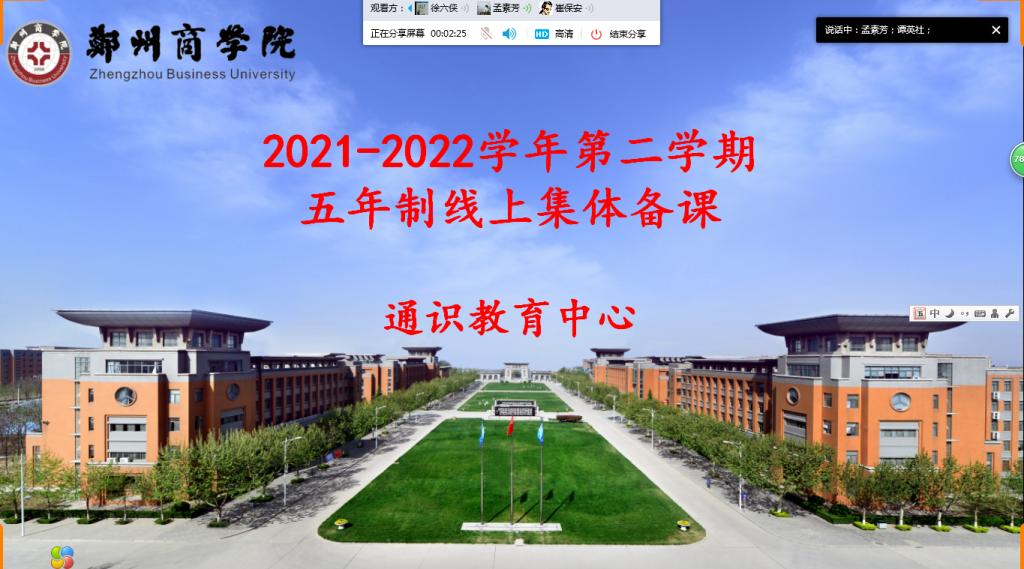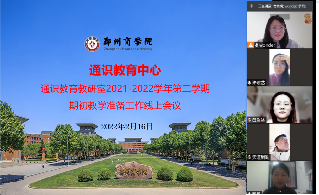 为做好新学期开学前的教学准备,带领老师们准确把握教材理清教学思路,并充分发挥集体智慧,集思广益,切实提升教师授课能力,保障教学质量的整体提升,通识中心组织各教研室于2021-2022学年春季学期开学前一周分别举行了线上集体备课研讨活动,全体专职及部分兼职教师参与了此次教研。