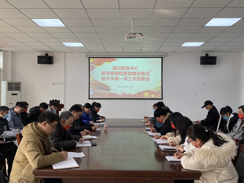 为深入贯彻落实学校推进课程思政建设精神,全面推进新学期部门课程思政建设,部署开学第一课各项工作安排,2月23日上午,通识中心在艺术楼204会议室召开部门新学期课程思政建设推进会。通识中心主任闫蕾蕾、党委书记王花磊和我中心全体教职工参加,特邀马院邢克鑫教授就开学第一课与课程思政融合做指导。