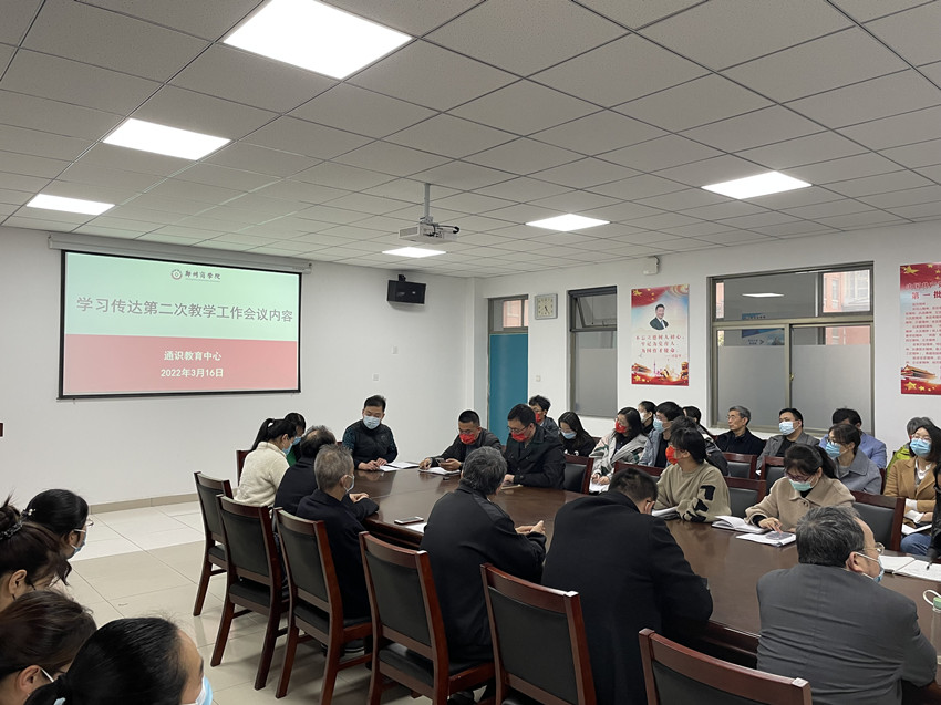 3月16日下午,通识教育中心在会议室学习传达第二次教学工作会议内容。通识中心主任闫蕾蕾、党委书记王花磊及全体教师参加了此次会议。