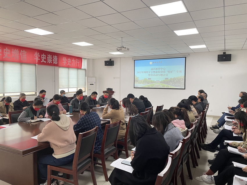 3月31日下午,通识中心在艺术楼204召开2022年网络安全暨虚拟货币“挖矿”专项整治活动专题会议。主任闫蕾蕾、党委书记王花磊及全体教师参加会议。