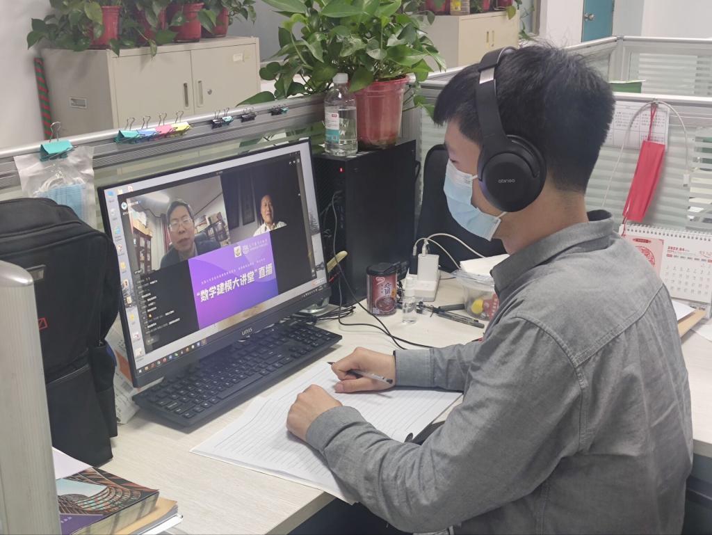 为了使我校师生更好的了解数学建模竞赛和课程,我中心组织数学建模指导教师和我校数学建模协会学生于4月7日晚上通过微信视频号《高教自习室》观看“数学建模大讲堂”第一期直播讲座。