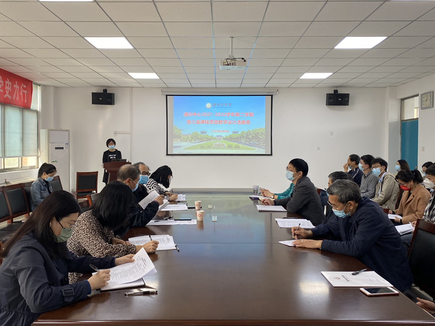 为响应我校第三届课程思政教学设计大赛,贯彻本学期课程思政建设总体安排,进一步提高课程思政育人能力,我中心于4月8日在艺术楼204举办课程思政内部选拔赛,本次选拔赛邀请马克思主义学院邢克鑫教授、通识中心陈东升教授、通识中心教师代表担任评委。通识中心主任闫蕾蕾及全体无课老师现场观摩比赛。