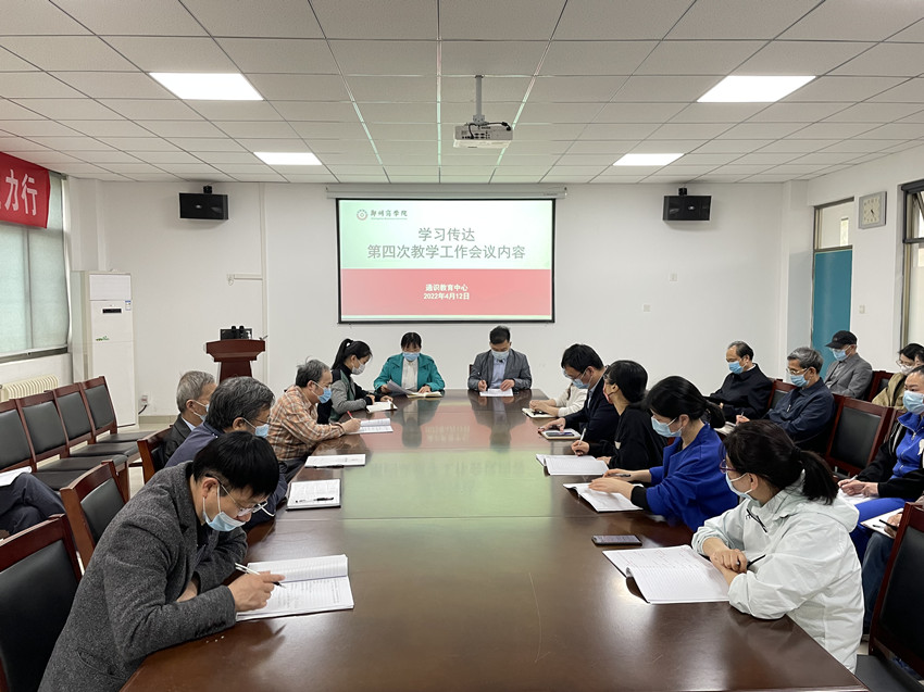 根据校党政工作书面报告精神和学校疫情防控工作要求,传达2021-2022学年第二学期第四次教学工作会议精神,我中心全体无课教师于4月12日下午在艺术楼204召开学习会议,会议由闫蕾蕾主任主持。