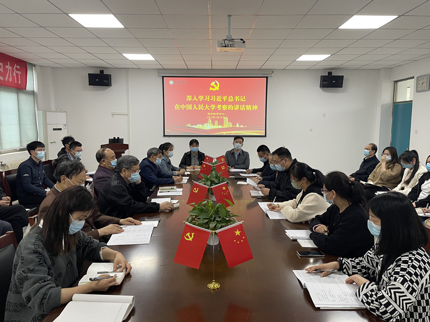 4月28日下午,我中心在艺术大楼204会议室召开第十周政治学习会议,深入学习贯彻习近平总书记在中国人民大学考察时的讲话精神,通识中心主任闫蕾蕾同志、党委书记王花磊同志及全体无课教师参加此次会议。