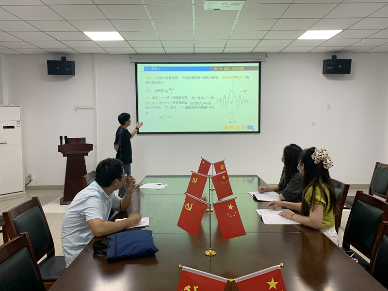 活动伊始,每位新入职教师进行微课展示。其中,王超老师讲解了《无穷大与无穷小》,孟晨老师讲解了《二阶、三阶行列式》,彭先奎老师讲解了《事件间的关系与运算》,王怡涛老师讲解了《函数的极限》。每位新教师讲授时,其余教师都对其优点及不足之处进行了记录,结束后大家进行了讨论,相互指出了各自的优势以及可以改进的地方。
