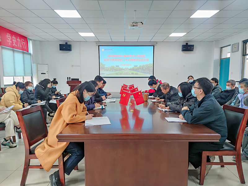 会议伊始,教工党支部书记宫玉荣同志带领大家学习了人民日报发表的论学习贯彻党的二十大精神评论员文章,文章深入解读了党的二十大精神的丰富内涵、核心要义和实践要求。文章中强调:空谈误国、实干兴邦,一分部署、九分落实。学习贯彻党的二十大精神,要在全面落实上下功夫,坚定不移把党的二十大提出的目标任务落到实处,不断夺取全面建设社会主义现代化国家新胜利。作为一名教育工作者,使命光荣,在牢记教育人的初心与使命的同时,要不断深入学习领悟党的二十大精神的丰富内涵,并认真落实到行动中去,坚持党对教育的全面领导,落实立德树人根本任务,在课程、课堂、课题三个层面做文章,注重培养和发展学生的核心素养,为党和国家培养合格的社会主义建设者和接班人。