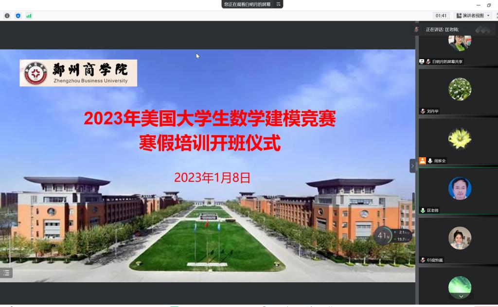 此次开班仪式和校外专家讲座,是2023年美赛寒假培训的正式开始。希望通过整个寒假的培训和参赛师生的共同努力,我校在2023年美国大学生数学建模竞赛中能够取得更好的成绩。