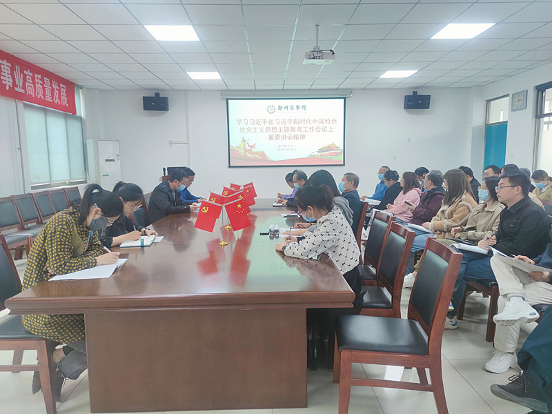 为学习贯彻习近平新时代中国特色社会主义思想,引导全体教职工自觉用习近平新时代中国特色社会主义思想武装头脑、指导实践、推动工作,4月14日上午,通识中心全体无课教师在艺术楼204召开会议,学习贯彻习近平新时代中国特色社会主义思想主题教育工作会议重要讲话精神,本次会议由党支部宫玉荣书记主持。
