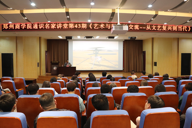 郭教授从达芬奇、亚里士多德、居里夫人等人的艺术与科学成就,引出二者是相辅相成的。科学家亦是艺术家,他们通过各式各样的图像、实物和影像来诠释他们对于世界的理解与判断。接着,郭教授从“什么是艺术”与“什么是科学”两方面,阐释了二者之间的关系,再以建筑中的科学、绘画中的科学和雕塑中的科学,分别向同学们展示了优秀艺术品中包含的科学。最后,郭教授以动物仿生车详细讲解其中艺术与科技的结合。
