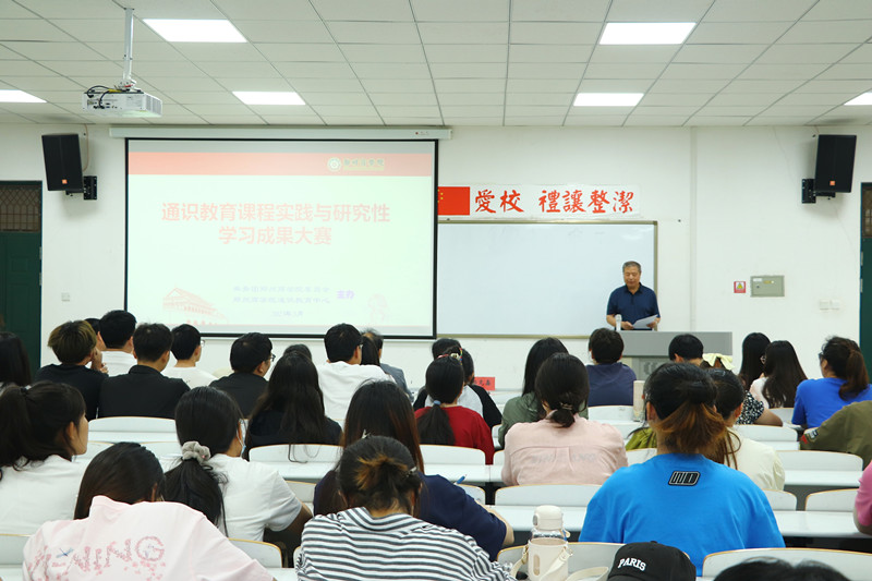 为深入推进通识课程教学改革,全面提升我校通识教育的教学质量和学生获得感,将以教师教为中心的模式转变为以学生学为中心的模式,真正实现“教师教”与“学生学”的有机统一,通识中心探索出了“以课程为依托,以小组合作为主要形式,以主题汇报为组织方式”的研究性学习活动方式。经过本学期的筹备、讨论、课件制作、老师指导及班级初赛,我中心与校团委联合主办的“通识教育课程实践与研究性学习成果大赛”,于5月31日在艺术大楼203教室如期举行,在初赛选拔中脱颖而出的8个小组进入决赛,参赛各组的学生在现场就座观赛。校团委李静静老师、通识教育中心赵振义、邢克鑫、陈东升、秦建国、曹林娟老师担任本次大赛的评委。