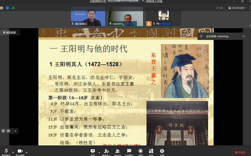 为传承弘扬中华优秀传统文化精神,进一步拓宽我校通识教育平台,通过协同育人帮助大学生塑造品格、涵养情操,通识中心9月28日特邀贵州大学张明教授为我校师生作题为《王阳明知行合一精神与当代大学生修养》的线上专题报告,通识教育教研室的赵振义老师主持了该场报告会。