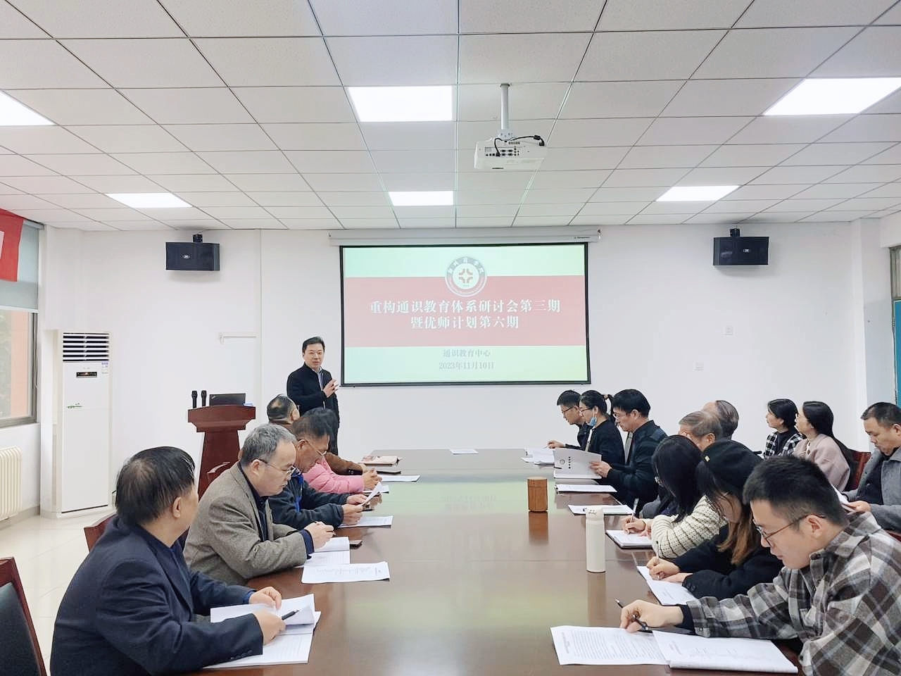 为进一步落实期初校领导报告关于重构我校通识教育体系的要求,不断提升通识课程建设质量,筑实全过程通识教育教师的信念养成,为教师的成长搭建交流和学习的平台,11月10日下午,通识教育中心组织召开重构通识教育体系研讨会第三期暨优师计划第六期,通识中心主任王花磊及全体通识课程任课教师参加了此次会议。