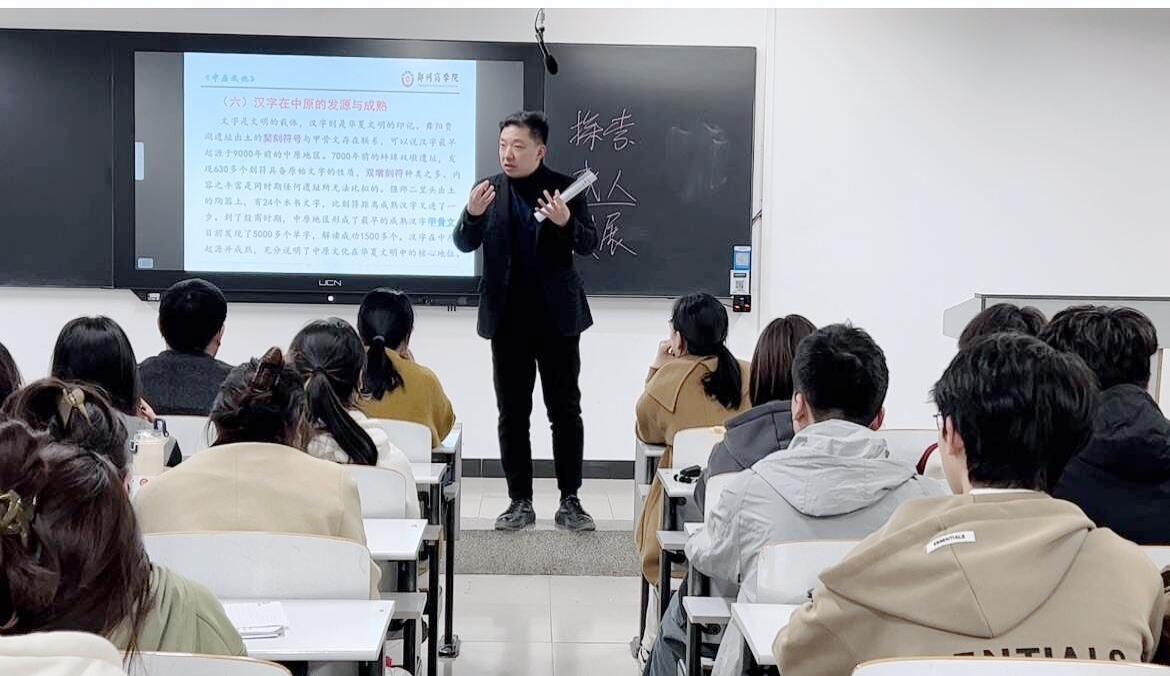 3月21日晚上,通识拓展课《中原文化》班在1402教室举办第二课堂学习成果展示活动,任课教师邢克鑫教授主持活动,通识中心通识教育教研室无课教师作为评委参加活动,全班学生参与展示活动。