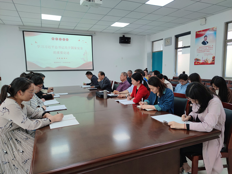 国家安全是安邦定国的重要基石,维护国家安全是全国各族人民的根本利益所在。在习近平总书记提出总体国家安全观10周年之际,4月18日上午,我中心全体无课教师在艺术楼Y204集中学习习近平总书记关于贯彻总体国家安全观重要论述。