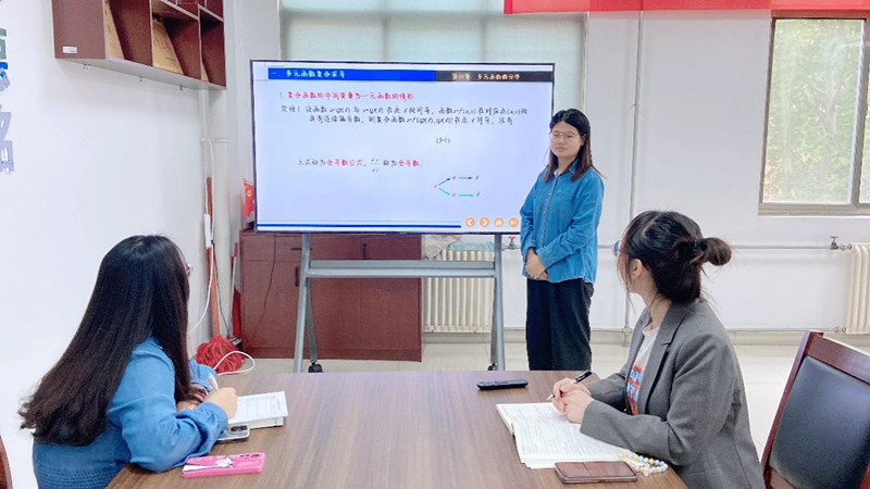 在说课环节中,教师们巧妙地融合了多媒体技术、教学模型以及实际案例等多种教学辅助工具,以生动活泼的形式展示他们对知识点的深刻理解和独到的教学设计。这种多样化的展示方式不仅增强了讲解的直观性,也提高了教学的互动性和实践性。活动后期,新聘教师们聚焦于“如何提升数学教学的互动性和实践性”这一议题,进行了深入的探讨。他们积极分享自己的教学理念和策略,旨在激发学生的学习兴趣,提高学生的参与度和实际解决问题的能力。