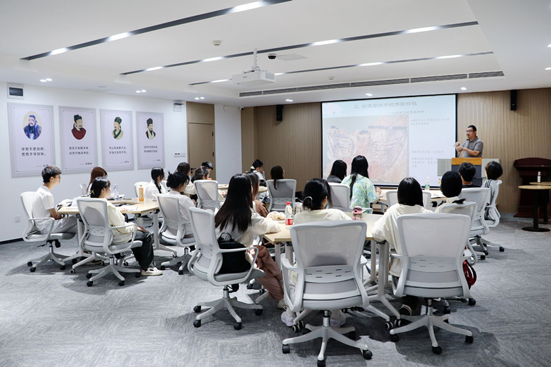 主题讲座环节,特邀国家金牌导游、国家高级导游杨远峰做了《石窟文化》的专题讲座,杨老师曾担任河南牧业经济学院、河南职业技术学院等多所高校的特聘讲师,是河南省旅游协会“高校导游工作室”负责人,是《畅游美丽河南》《在这里·读懂河南》等多本杂志的副总编辑,对石窟文化有着独到而深刻的研究,杨老师此次讲座从石窟艺术的源头娓娓道来,为同学们展开了一幅石窟艺术历史发展的恢宏画卷,带着同学们一路畅游,从沙漠绿洲中的佛国妙境到河西走廊、莫高窟与麦积山,并以龙门造像与中原模式和东魏、北齐的造像为例讲述了石窟艺术从东西对立走向南北交融,重点对最具代表性的艺术巨制---龙门卢舍那进行了讲解,深入浅出地讲述了厚重石窟文化的千年历史,让同学们仿佛置身其中地领略了石窟文化的魅力,为后期实地考察打下了坚实的知识基础,赢得了同学们的阵阵掌声。