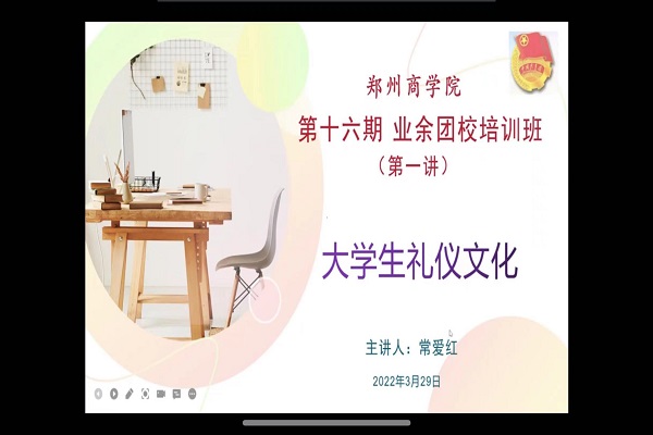 为更好地发挥团组织联系青年的桥梁和纽带作用,使团的基层组织覆盖我校全体青年,3月29日18:00,我校第十六期业余团校第一讲以线上钉钉直播的形式顺利举行。通识教育教研室主任常爱红老师受邀担任主讲,21级各班班长、团支书共三百余人参加本次活动。