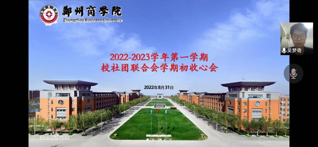 为深入贯彻落实习近平总书记关于青年的工作的重要思想,提高院学生会骨干成员的组织协调能力,确保新学期各项工作顺利展开,2022年8月29日-9月3日,各校级学生组织陆续召开线上新学期收心会。参加本次会议的有校学生会、校社团联合会、校媒体中心等各部门负责老师、主席团成员及骨干成员。