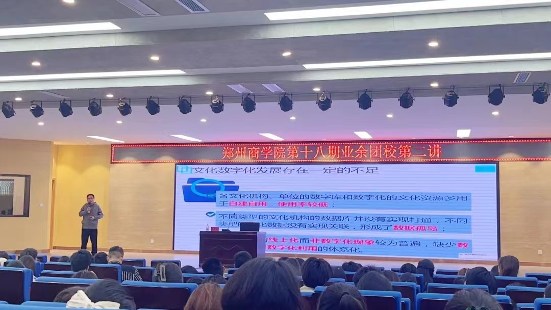 11月8日,王俊明老师讲授团课第二讲《担负新时代文化使命 谱写数字文化新篇章》。王俊明老师提出建设文化强国,如何赓续中华文脉,推进中华优秀传统文化的创造性转化和创新性发展并引出本次课程的第一部分“习近平文化思想”。其次通过文化领域产值以及生产体系供给并以“故宫博物院”为实例来强调文化数字化发展存在一定的不足。再以“数字文化发展的生动实践”来指出关于《推进实施国家文化数字化战略的意见》所明确的八项任务的政策导向。最后以“数字文化发展的蓝图路线”为结尾,强调“着眼文化新基建,在中华文明特质和形态中彰显自信自强”。