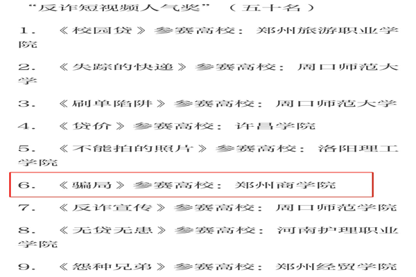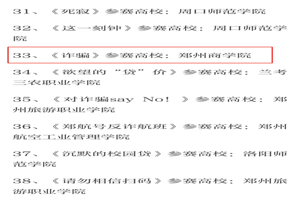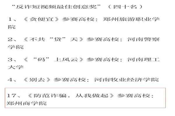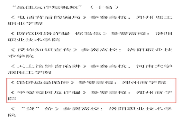 我校于首届“平安河南·校园诈”公益短视频大赛取得佳绩