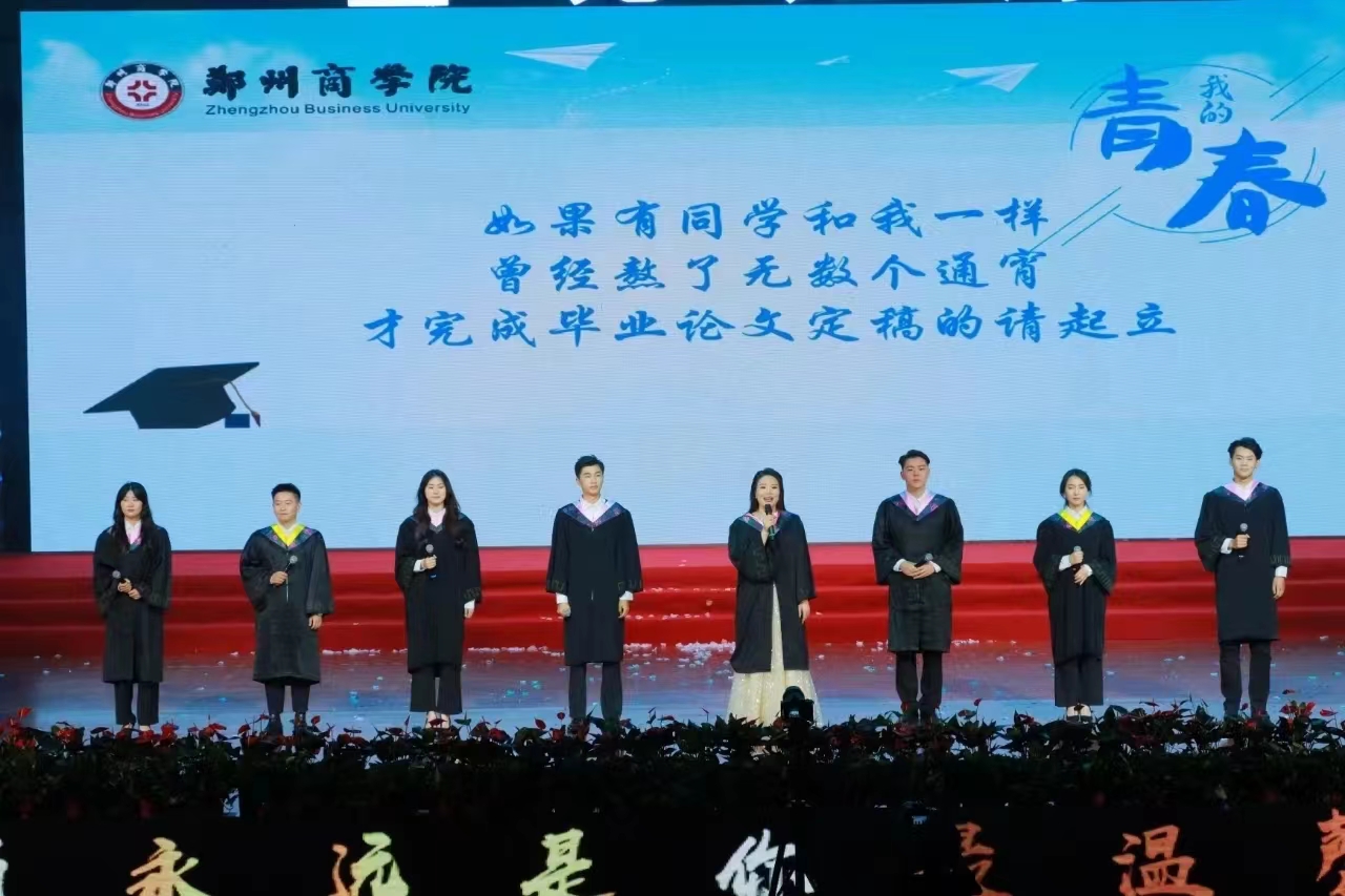 本次晚会以“星光如海”为主题,以“星辰启航”、“光影归帆”、“梦海远航”三个篇章记录了2024届毕业生在郑商的青春岁月,节目涵盖了视频、舞蹈、歌曲串烧、小品、讲述、音诗画等多种表演形式,表达了毕业生们在临别之际对母校的感恩和不舍之情,同时也表现了毕业生们对未来的期待与向往。