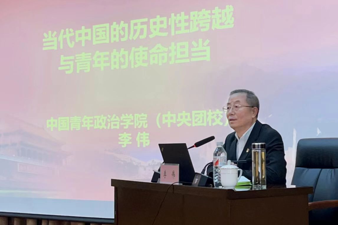 为深入学习贯彻习近平新时代中国特色社会主义思想和党的二十届三中全会精神,认真贯彻落实习近平总书记关于青年工作的重要思想,进一步加强青年学生的政治引领,着力培养坚定的青年马克思主义者。11月29日上午,我校邀请中国青年政治学院(中央团校)马克思主义学院原院长、中国马克思主义研究中心原常务副主任李伟教授作题为《当代中国的历史性跨越与中国青年的使命担当》专题讲座。校党委副书记兼纪委书记裴晓涛、学务处处长路程、校团委书记王花磊、各学院团委书记、第十四期青马工程培训班学生及团学代表共200余人认真听取此次报告。报告会由校团委书记王花磊主持。