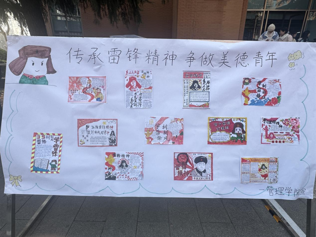 3月10日,管理学院于2号楼门口举办“传承雷锋精神,争做美德青年”手抄报活动。