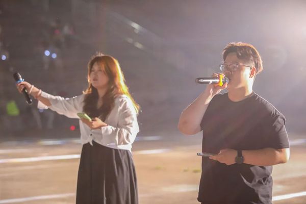 当追光柱劈开黑暗,握着话筒的指尖都在发光。高音像窜天猴直冲穹顶,抒情片段连空气都变成粉色泡泡。郑商学子在歌声中欢呼,一起推动这场视听盛典走向高潮!