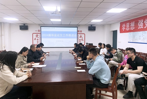为进一步做好2024届本科毕业论文相关工作,结合我校教学工作总体部署及毕业论文(设计)管理规定,我院于3月13日下午召开2024届毕业论文工作推进会。院长张元通、教学秘书杨阳、各教研室主任及毕业论文指导教师参加会议。