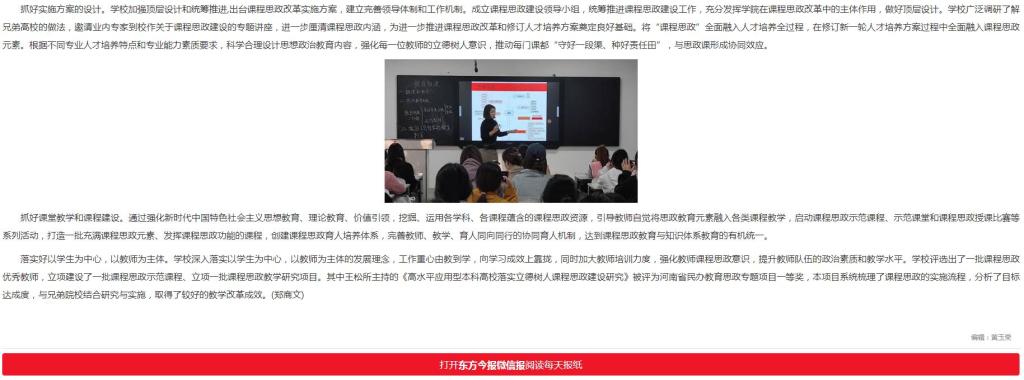 2021年12月31日,我省著名媒体《东方今报》猛犸新闻客户端报道了我校课程思政建设情况。