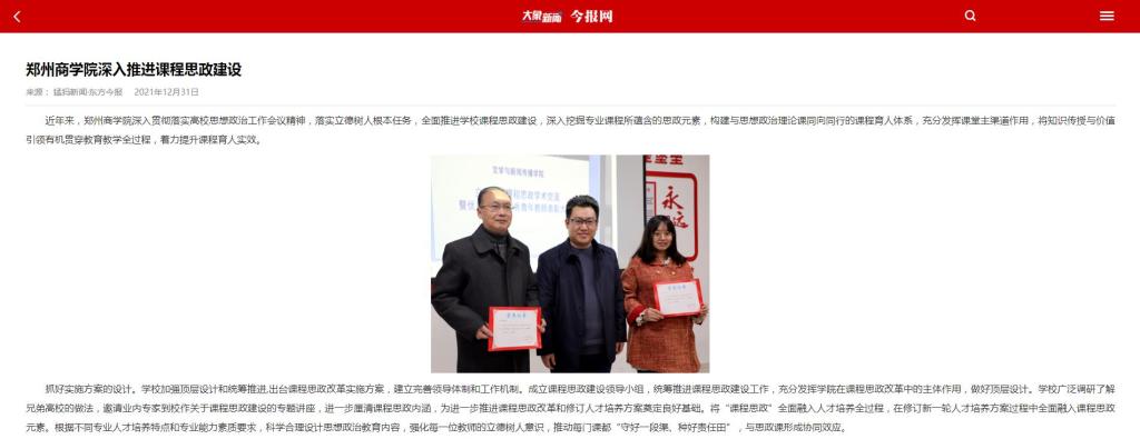 学院将以此为契机,不断加强课程建设,把立德树人的任务持续深入的贯彻下去。
