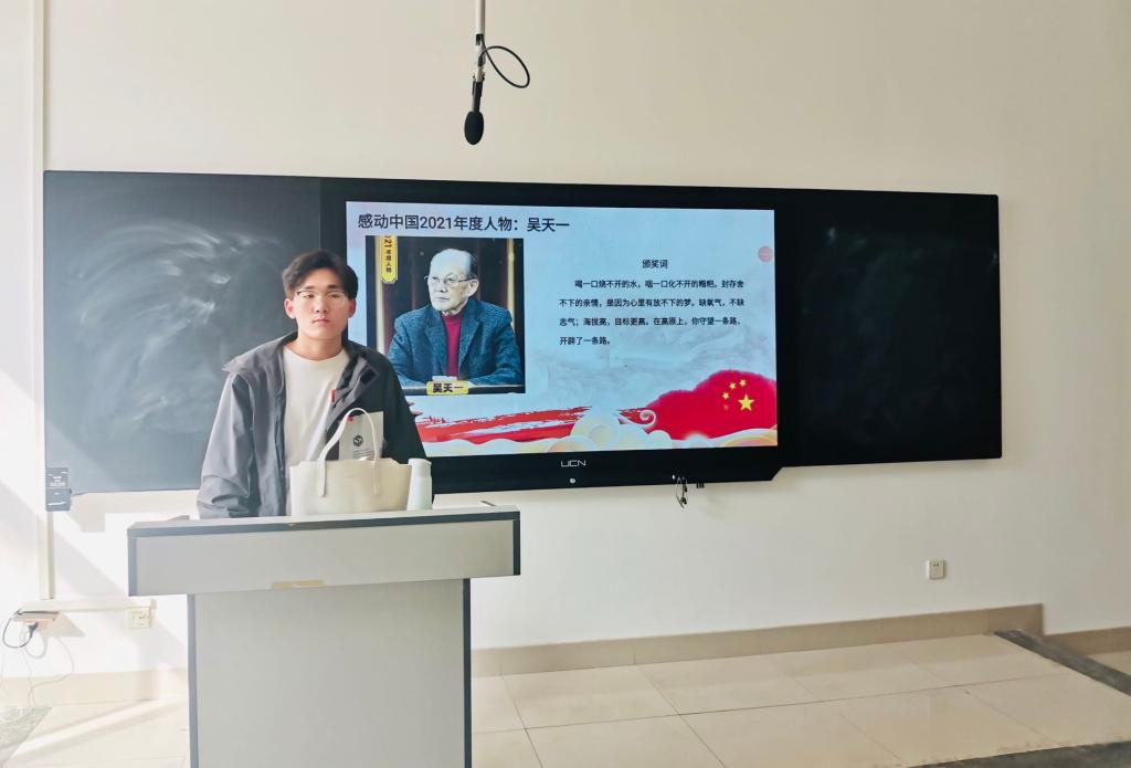 在新学期开始之际,适逢感动中国2021年度人物颁奖典礼隆重举行,为使学生将感动中国人物崇高精神内化于心、外化于行,学生第三党支部党员利用课余时间深入各班级进行宣讲活动。宣讲活动中,党员们将党的历史、党的精神同感动中国人物的先进事迹结合,从新时代学生角度深入剖析了先进事迹背后的先进内核。活动现场同学们积极互动,氛围高涨,得到了老师、学生的高度评价。